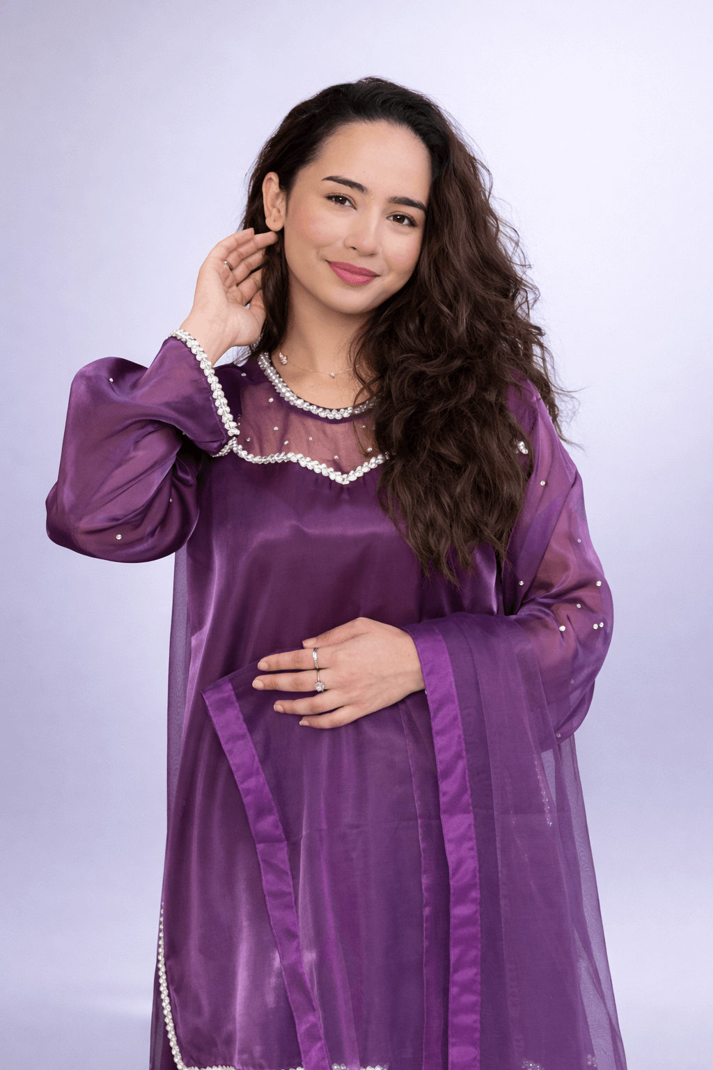 Elevate your wardrobe with the timeless charm of our Royal Plum Silk Ready-to-Wear 3 Piece Suit, a luxury outfit created for women who appreciate modest elegance and refined Pakistani fashion.